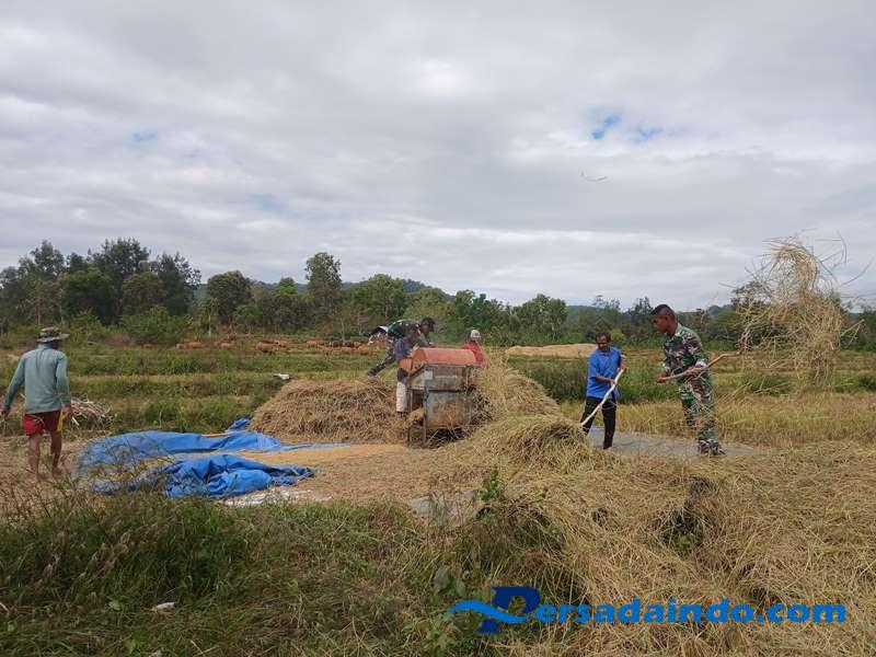 Belu – Upaya mendukung ketahanan pangan nasional Pos Lookeu bantu masyarakat panen padi di Dusun Batulu, Desa Lookeu, Kecamatan Tasifeto Barat, Kabupaten Belu. Kamis (22/05/2025).
