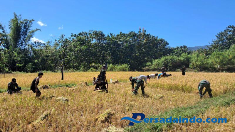 Belu – Pos Mahen mewujud nyatakan kepedulian terhadap masyarakat, panen padi masyarakat di Desa Maneikun, Kecamatan Lasiolat, Kabupaten Belu. Rabu (14/05/2025).