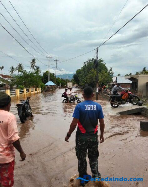Persadaindo.com – Bima _ Pada hari Kamis, tanggal 7 November 2025, wilayah pegunungan di Desa Boro, Kecamatan Sanggar, Kabupaten Bima, mengalami luapan air akibat hujan deras yang mengguyur sejak tadi siang. Air hujan yang mengalir dari pegunungan meluap ke jalan raya setinggi lutut orang dewasa, menyebabkan kemacetan total di Jalan Lintas Sanggar Tambora, Desa Boro.
