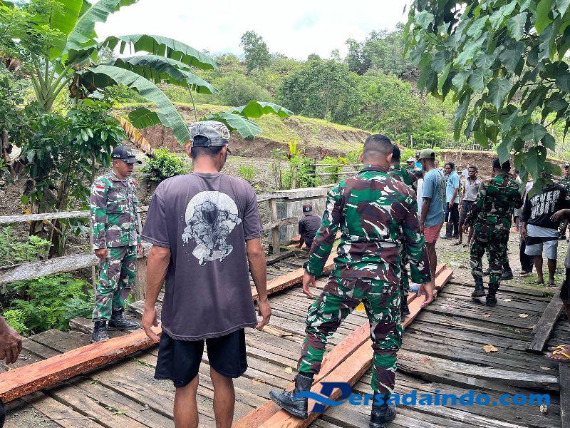 Menanggapi hal tersebut Danpos Salore Letda Inf Ruslin dan anggotanya bersama masyarakat bergotong-royong memperbaiki dengan mengganti 12 balok kayu dukungan dari swadaya masyarakat untuk memastikan jembatan kembali aman dan nyaman untuk digunakan.