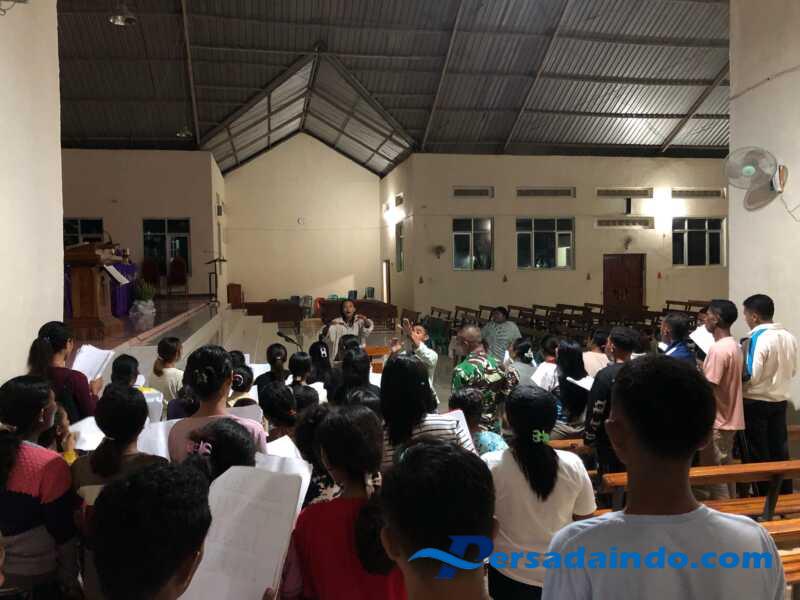 Persadaindo.com – Belu – Dalam rangka menyambut Hari Raya Paskah, Pos Turiscain ikutilatihan koor latihan paduan suara bersama masyarakat binaannya Desa Maumutin, Kecamatan Raihat. Kamis (10/04/2025).