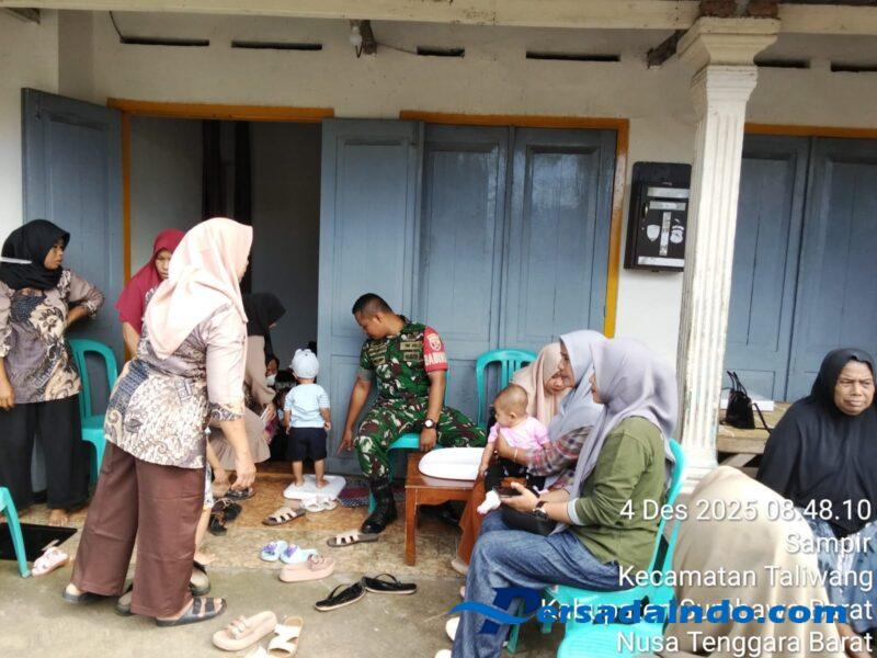 Upaya meningkatkan kualitas kesehatan masyarakat terus dilakukan oleh TNI melalui pendampingan kegiatan di wilayah. Pada Kamis, (4 Desember 2025) pukul 08.00 Wita, Babinsa Kelurahan Sampir Koramil 1628-01/Taliwang, Koptu Fahrurrozi, melaksanakan pendampingan kegiatan Posyandu Gotong Royong Sampir B, yang berlangsung di Lingkungan Sampir B, Kelurahan Sampir, Kecamatan Taliwang, Kabupaten Sumbawa Barat.