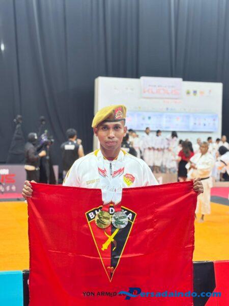Denpasar, 22 Oktober 2025 – Prajurit Kodam IX/Udayana kembali menorehkan prestasi di bidang olahraga bela diri Kempo. Serda Mario Moniz Bere, prajurit Batalyon Armed 20/Bhadika Yudha, berhasil mengharumkan nama Kodam IX/Udayana dan Provinsi Nusa Tenggara Timur (NTT) pada ajang Pekan Olahraga (PON) Bela Diri Kudus 2025 yang berlangsung pada 18–22 Oktober 2025.