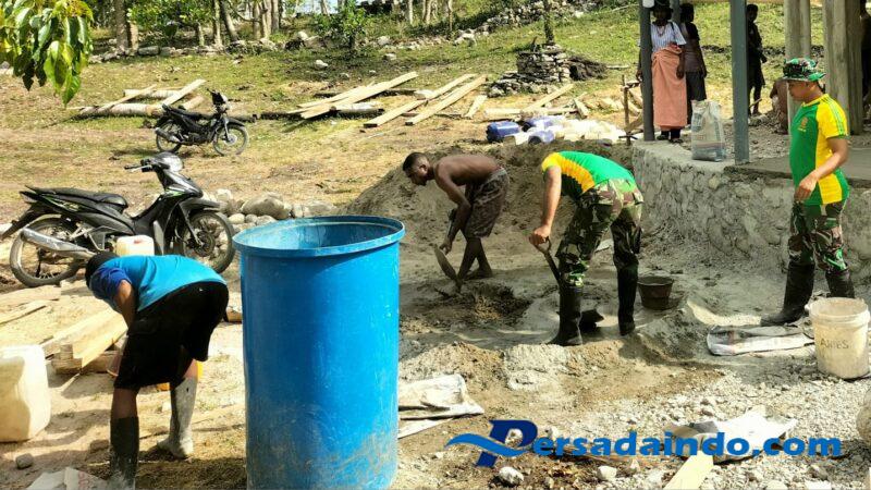 Malaka, Kabupaten,— Prajurit Pos Ailala Satgas Pengamanan Perbatasan (Pamtas) RI–RDTL Sektor Timur Yonarmed 12 Kostrad turut membantu warga setempat membangun rumah adat di wilayah perbatasan sebagai bentuk kepedulian terhadap pelestarian budaya dan wujud nyata kemanunggalan TNI dengan rakyat, pada Kamis (06/11/2025).