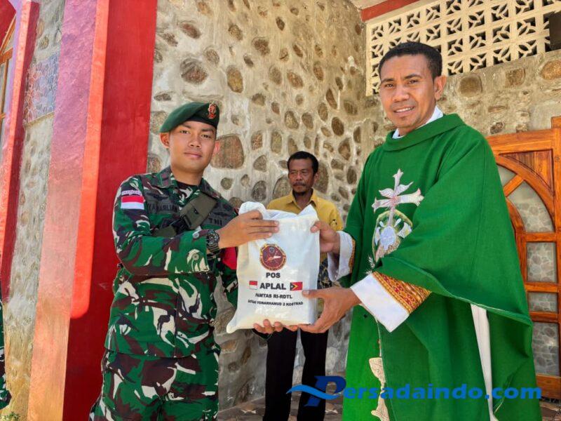 Mutis – Prajurit Satgas Pamtas RI-RDTL Sektor Barat Pos Aplal berkunjung dalam suasana hangat Ibadah Minggu di Gereja Aplal Ds. Tasinifu, Kec. Mutis, Kab. TTU. Minggu (28/09)