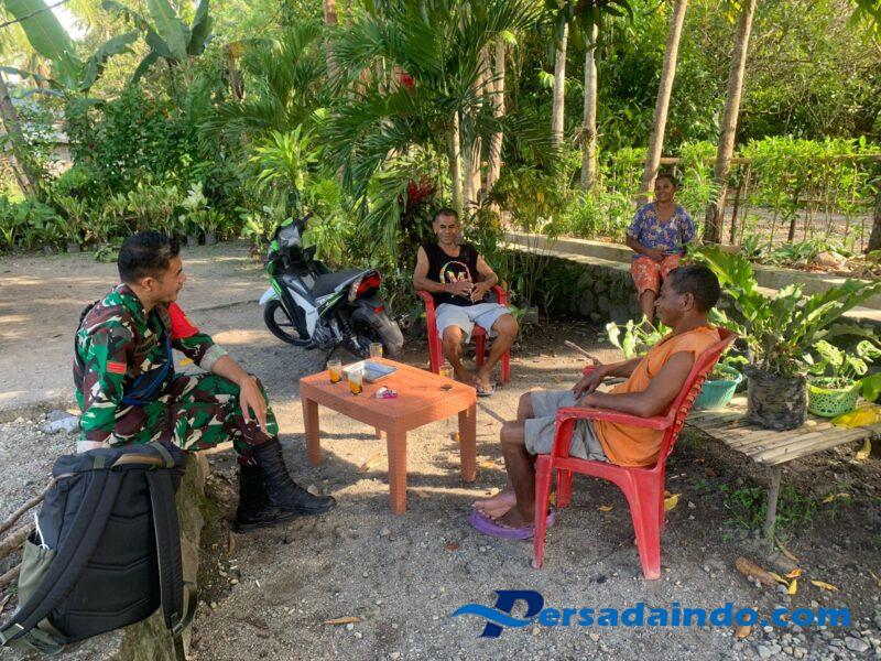 Ende, Praka Jhon Fernandes, Babinsa Koramil 1602-03/Detusoko, melaksanakan kegiatan monitoring wilayah dan komunikasi sosial (Komsos) bersama warga Desa Mautenda, Kecamatan Wewaria, Kabupaten Ende, pada Selasa pagi (1/8/2025).