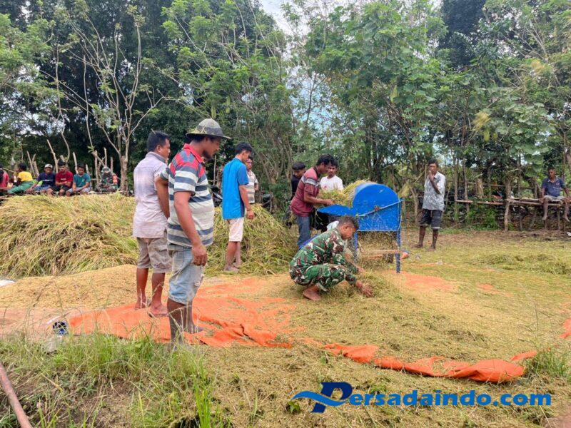 NTT-Sumba Timur.Dalam rangka mendukung ketahanan pangan nasional, Babinsa Koramil 06/Karera Kodim 1601/Sumba Timur, Pratu Aldit Amah, turut serta mendampingi para petani saat proses perontokan padi di Desa Watubara, Kecamatan Karera, Kabupaten Sumba Timur, Selasa (05/08/2025).