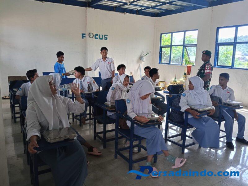 Sumbawa Barat – NTB, Program Makan Sehat Bergizi (MSG) kembali digelar di wilayah Kecamatan Jereweh. Pada Senin, (24 November 2025) pukul 10.40 WITA, Babinsa Desa Belo, Serda Sukardin dari Koramil 1628-05/Jereweh, melaksanakan kegiatan pendampingan MSG di SMK Rum Inovasi Jereweh yang berlokasi di Desa Belo, Kecamatan Jereweh, Kabupaten Sumbawa Barat.