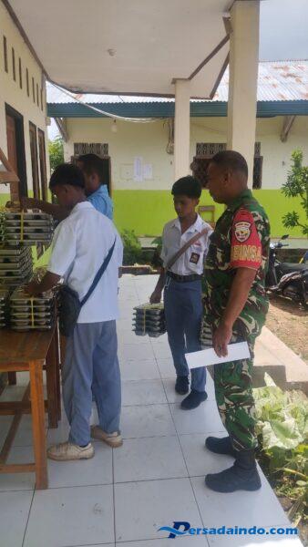 Babinsa Serda Ismail Rahadat hadir langsung untuk memastikan proses pendistribusian berjalan aman dan tepat sasaran. Ia juga berkoordinasi dengan pihak sekolah serta tim penyelenggara untuk menghindari potensi hambatan di lapangan.