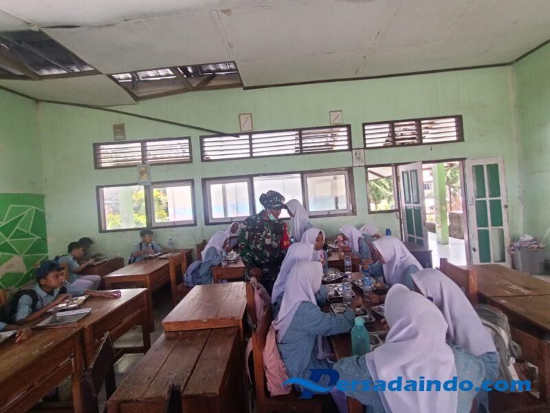 Sumbawa Barat, NTB – Dalam rangka mendukung program peningkatan gizi anak sekolah, Babinsa Desa Persiapan Seteluk Rea, Koramil 1628-03/Seteluk, Serda Muhammad Hidir, melaksanakan pendampingan kegiatan Makanan Sehat Bergizi (MSG) di SMPN 1 Seteluk, Kecamatan Seteluk, Kabupaten Sumbawa Barat, Senin (29/9/2025).