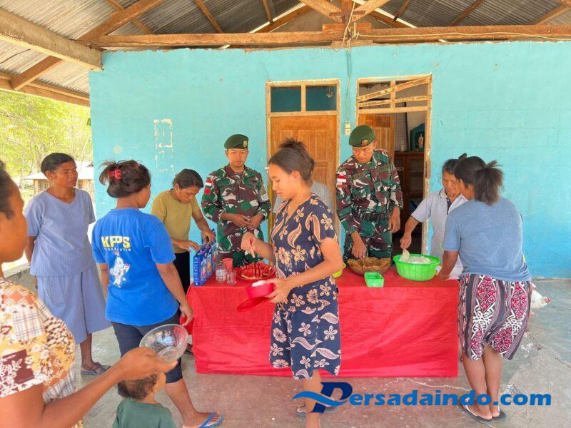 Nainaban – Prajurit Satgas Pamtas RI-RDTL Sektor Barat Pos Baen mengadakan kegiatan untuk berkontribusi dalam mewujudkan generasi muda yang sehat melalui program Penyuluhan Makanan Tambahan (PMT) bagi Anak-anak dan Balita di Desa Nainaban, Kec. Bikomi Nilulat. Senin (29/06)