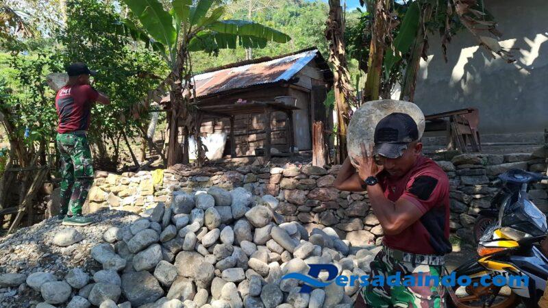 Dibawah pimpinan Wadanpos Sertu Sulaiman dalam mewujudkan kedekatan dan kepedulian Satgas terhadap masyarakat binaan bersama anggotanya turut serta dalam pembangunan rumah milik Paolino Mali (46 tahun).