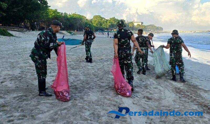 Karya Bhakti Terpadu yang melibatkan berbagai satuan, termasuk Korem 163/WSA, Kodim 1611/Badung, Yonif 900/SBW, Denkav 4/SP, Yonif 741/GN, dan DLHK Badung. Kaur Lat Kodim 1611/Badung, Kapten Inf I Komang Suardika., selaku perwira yang mengatur kegiatan di pantai.