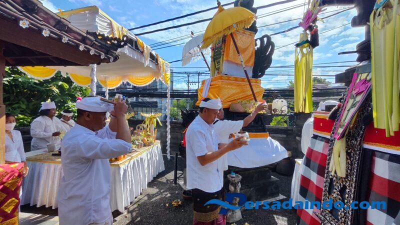 Sejak pagi seluruh personel Polsek Kuta Selatan bersama Bhayangkari Ranting Kuta Selatan terlihat antusias mempersiapkan sarana dan prasarana upacara. Piodalan ini dipuput oleh Jro Mangku Komang selaku pemangku di Pura Bhuana Kerthi, diawali dengan nganteb upakara dan pelaksanaan Caru Eka Sata (Brumbun).