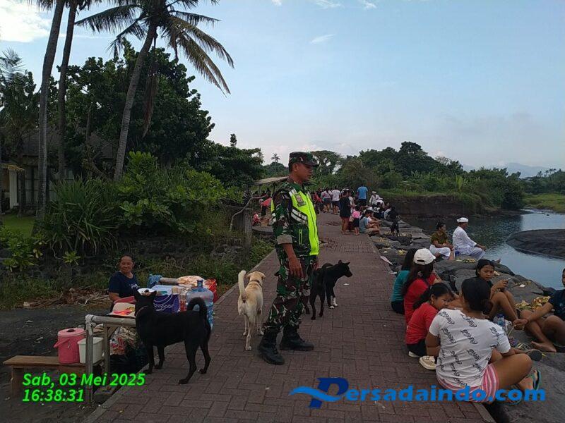 Disamping melaksanakan pengawalan dan pengamanan persembahyangan warga, Serka Gede Adiasa juga menggelar pengamanan di Pantai Tegal Besar yang berlokasi di Dusun Tegal Besar, Desa Negari, Sabtu ( 03/05/25 ).