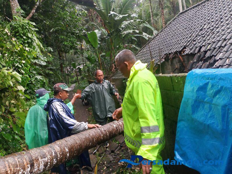 Musibah pohon tumbang jenis kelapa ini menimpa rumah Wayan Budiasa ( 49 tahun ) salah satu Dusun Kanginan Desa Paksebali, Kecamatan Dawan.