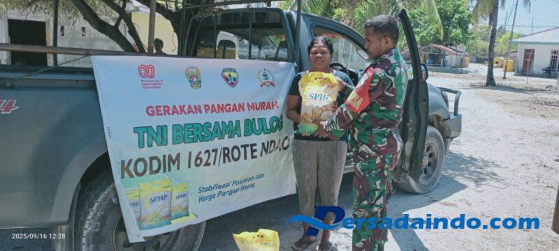 Rote Ndao – Dalam rangka membantu meringankan beban masyarakat, Babinsa Koramil 1627-02/Pantai Baru melaksanakan kegiatan penjualan beras murah di Desa Papela, Kecamatan Rote Timur, Kabupaten Rote Ndao, pada Sabtu (20/9/2025) pukul 09.00 WITA.