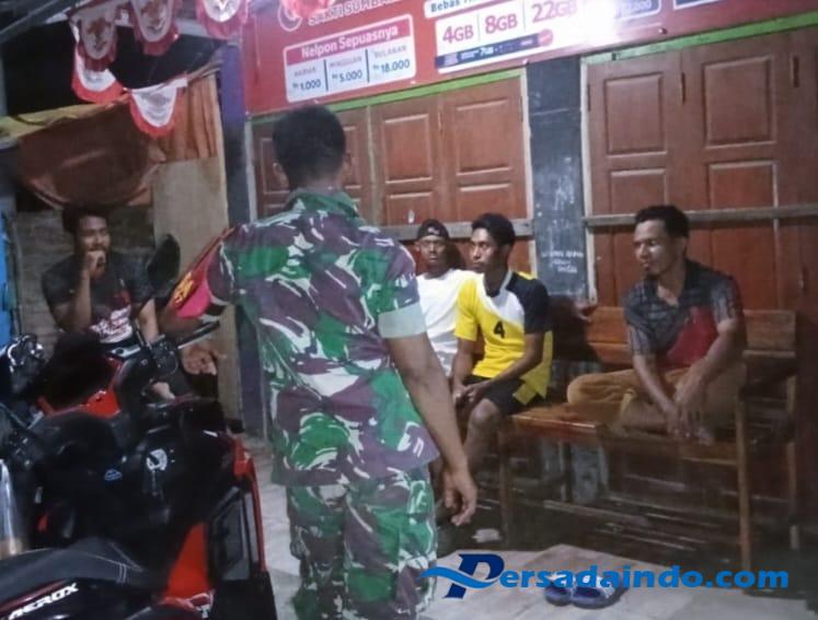 Monta _ Rabu malam,(1/10/2025), seluruh Babinsa wilayah Koramil 1608-07/Monta melaksanakan patroli kongkow-kongkow bersama warga binaan secara serentak. Serda Sulaiman dari Desa Sakuru mengajak warga, khususnya generasi muda, untuk aktif menjaga keamanan dan ketertiban lingkungan serta menjauhi perbuatan negatif seperti penyalahgunaan narkoba, minuman keras, dan judi yang merugikan keluarga dan diri sendiri.