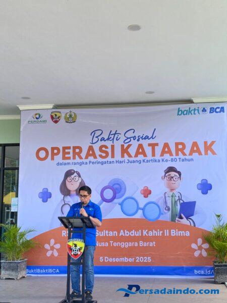 Bima, NTB — Dalam rangka Hari Juang Kartika ke-80 Tahun 2025, RSAD Bima melaksanakan Bhakti Kesehatan Operasi Katarak Massal pada Sabtu (05/12). Kegiatan ini menargetkan 150 warga Kabupaten dan Kota Bima yang mengalami gangguan penglihatan akibat katarak. Pelaksanaan berjalan aman dan lancar.