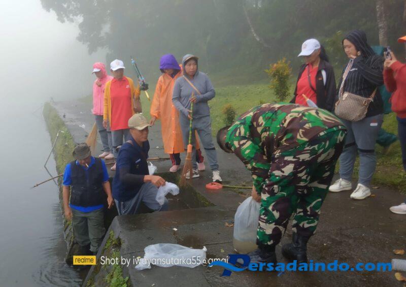 Tabanan – Dalam rangka memperingati Bulan Bung Karno VII, Babinsa Desa Batunya Koramil 1619-07/Baturiti Koptu I Kadek Juliana bersama perangkat desa dan masyarakat melaksanakan kegiatan bersih-bersih lingkungan, penanaman pohon, serta penebaran bibit ikan mujair di kawasan Danau Beratan, Kec. Baturiti, Kamis (26/6/2025)