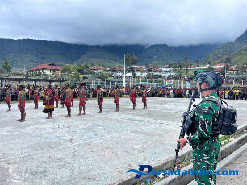 Puncak Jaya – Satgas Yonif 743/PSY menunjukkan komitmennya dalam mendukung pembangunan dan pelestarian budaya di Tanah Papua dengan turut berpartisipasi dalam rangkaian perayaan HUT Kabupaten Puncak Jaya ke-29.