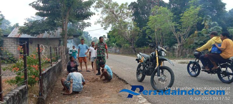NTT-KUPANG — Dalam rangka menyambut kunjungan kerja (kunker) Bupati Kupang ke wilayah Kecamatan Kupang Barat, Babinsa Kuanheun dari Koramil 1604-06/Batakte, Sertu Ruben A Tiumlafu, bersama warga Dusun 01 Desa Kuanheun, melaksanakan kegiatan Jumat Bersih pada Jumat pagi (06/06/2025). Kegiatan ini berfokus pada pembersihan jalan utama yang akan dilalui oleh rombongan Bupati.