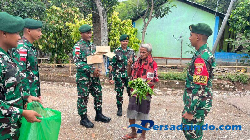 Napan – Satgas pamtas RI-RDTL Sektor Barat Yonarhanud 2 Kostrad Pos Napan Bawah melaksanakan kegiatan berbagi sayuran yang merupakan hasil ketahanan pangan Pos Napan kepada masyarakat Desa Napan, Kec. Bikomi Utara, Kab. TTU. Senin (17/11)