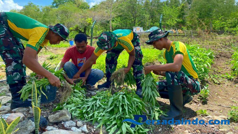 Belu, Nusa Tenggara Timur — Prajurit Pos Dafala Satgas Pamtas RI-RDTL Yonarmed 12 Kostrad melaksanakan kegiatan pembinaan teritorial (Binter) berupa panen bersama masyarakat di lahan sayur milik Pos Dafala yang berlokasi di Desa Dafala, Kecamatan Tasifeto Timur, Kabupaten Belu, NTT. Kegiatan ini menjadi wujud nyata kepedulian TNI terhadap upaya peningkatan ketahanan pangan di wilayah perbatasan.