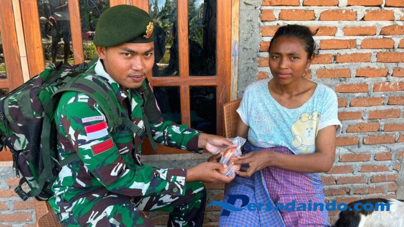 Belu, – Satuan Tugas Pengamanan Perbatasan (Satgas Pamtas) RI–RDTL Yonarmed 12 Kostrad melaksanakan kegiatan pembagian telur kepada masyarakat di sejumlah desa perbatasan Kabupaten Belu dan Malaka, Nusa Tenggara Timur, Jumat (3/10/2025). Kegiatan ini merupakan bagian dari program Ibu Kasad, Ny. Uli Maruli Simanjuntak, yang berfokus pada pemenuhan gizi untuk menekan angka stunting di wilayah perbatasan.