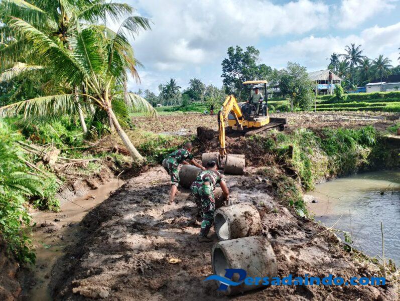 Lombok Tengah – Dalam program TNI Manunggal Membangun Desa (TMMD) ke-124, pengerjaan pembangunan jalan baru telah mencapai 90 persen dengan pemasangan gorong-gorong di jalan baru di desa Selebung Kecamatan Batukliang Lombok Tengah.