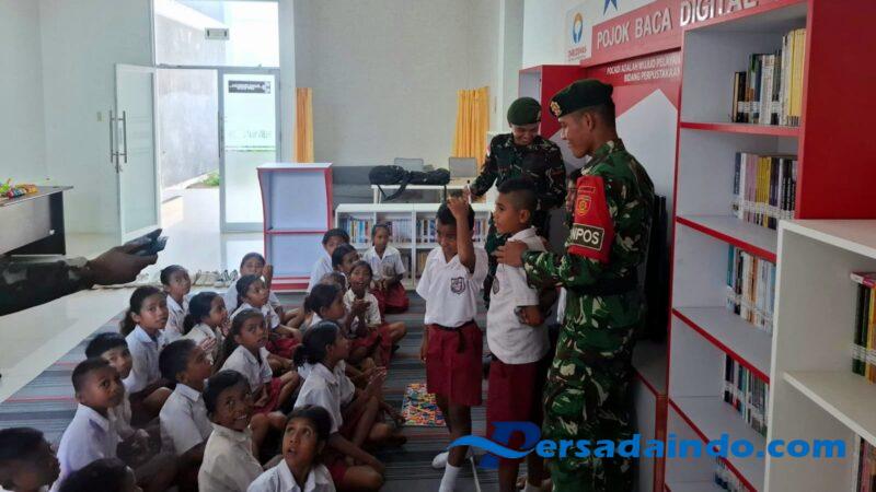 Malaka,– Dalam upaya meningkatkan kualitas pendidikan anak-anak di wilayah perbatasan, Satgas Pamtas RI–RDTL Yonarmed 12 Kostrad melaksanakan kegiatan tenaga pendidik di Perpustakaan PLBN Motamasin, Kabupaten Malaka. Kegiatan ini diisi dengan pelajaran Bahasa Inggris dan pengenalan komputer bagi para siswa SD Metamauk yang antusias mengikuti setiap sesi pembelajaran.