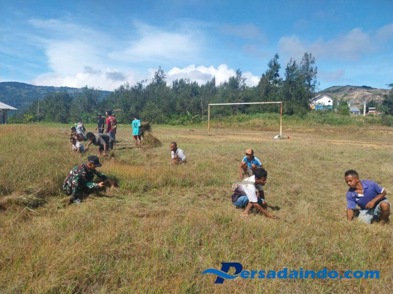 Belu – Pos Fohuk bersama masyarakat bersihkan lapangan sepak bola di Dusun Pauk, Desa Loonuna, Kecamatan Lamaknen Selatan, Kabupaten Belu. Kamis (29/05/2025)