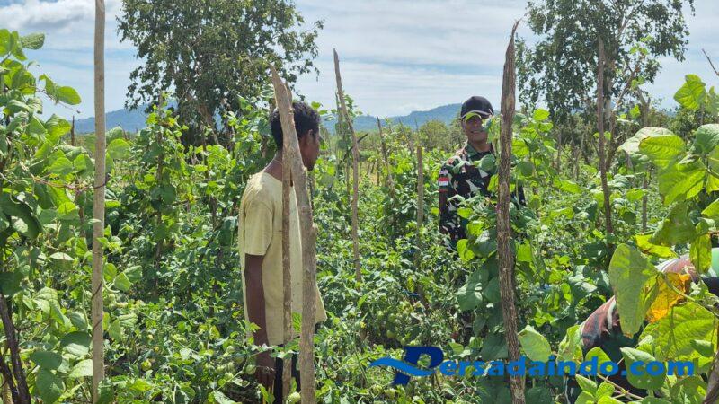 Kali ini anggota Pos Asulait dibawah komando Danpos Sertu Kadek Agus membantu Velipe Dos Santos memetik tomat yang telah tiba waktu panen.