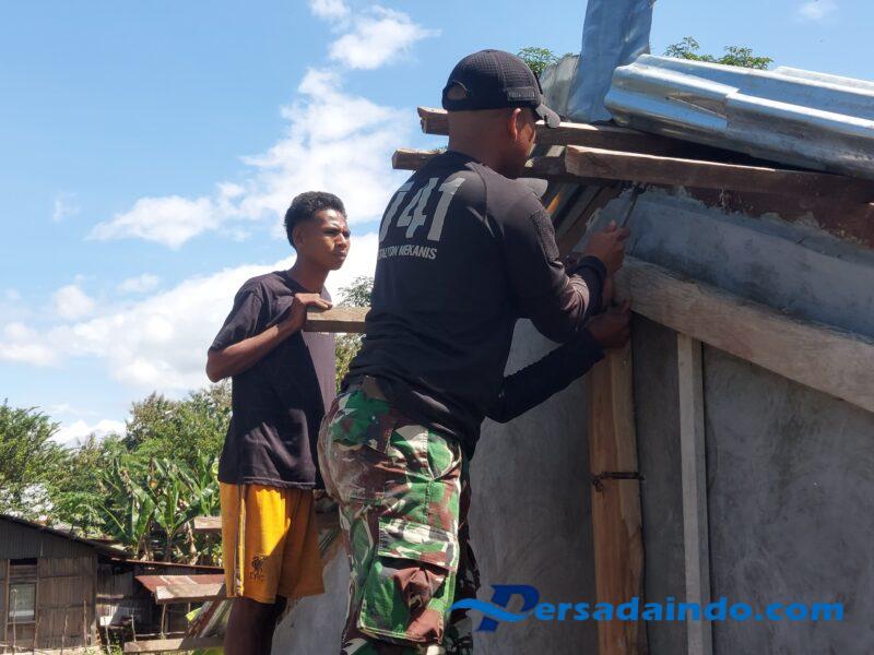 Pos Delomil bersama warga setempat secara bergotong-royong melakukan pembenahan rumah Jeremias Ati (42 tahun) secara sukarela dari tahap awal pembuatan rangka, pengecoran, hingga hari ini pemasangan atap dan finising, kegiatan ini juga diharapkan akan memupuk jiwa kebersamaan terhadap masyarakat dan anggota Pos Delomil.