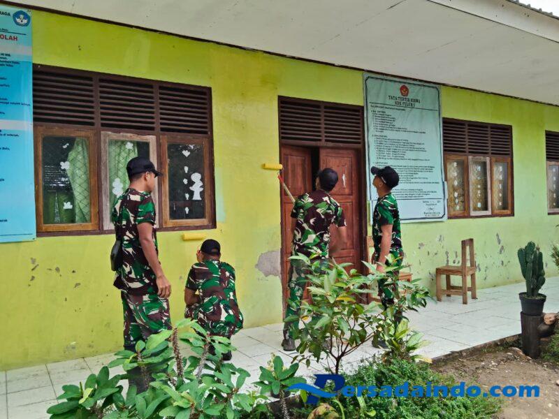 Turut serta bersama pihak sekolah dalam mempercantik sekolah tempat belajar untuk generasi penerus bangsa merupakan salah satu upaya yang dilakukan oleh Satgas Pos Kewar dalam memotivasi serta meningkatkan semangat belajar anak dalam wujud menyediakan tempat belajar nyaman.