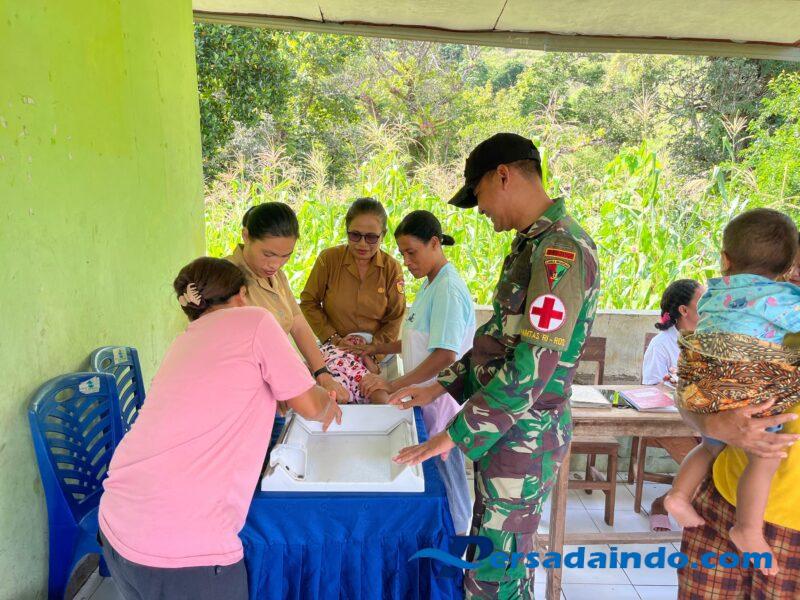 Persadaindo.com – Belu – Satgas Yonif 741/GN Pos Maubusa dampingi Posyandu dalam pengecekan kesehatan serta bagikan bubur kacang hijau untuk balita dan ibu hamil di Dusun Nuaderog, Kecamatan Raihat, Kabupaten Belu. Kamis (07/05/2025).