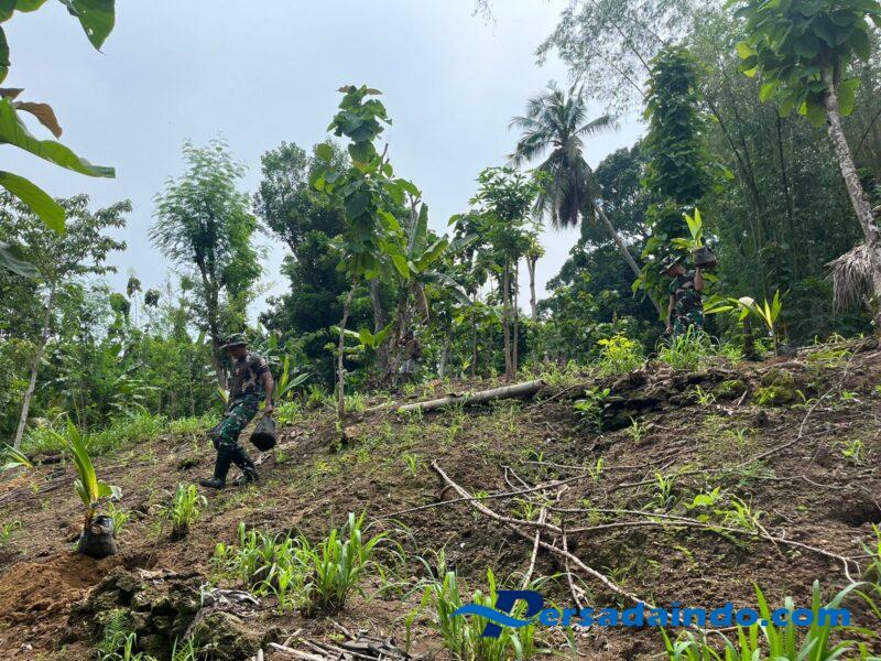 Belu – Satgas Yonif 741/GN Pos Maubusa laksanakan penanaman bibit pohon kelapa di Dusun Makereg Badaeng, Desa Asumanu, Kecamatan Raihat, Kabupaten Belu. Jumat (23/05/2024).