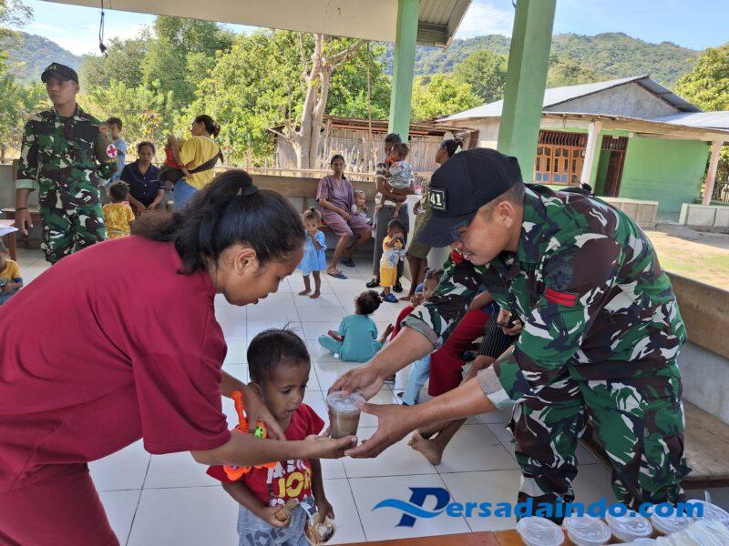 Belu – Pos Silawan bersama Puskesmas Silawan berikan pelayanan Posyandu serta bagikan bubur kacang hijau kepada masyarakat Dusun Adibitin, Desa Silawan, Kecamatan Tasifeto Timur, Kabupaten Belu. Sabtu (14/06/2025).