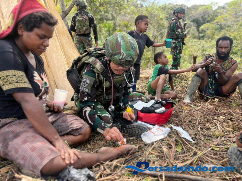 Dengan penuh kepedulian, prajurit Satgas Yonif 743/PSY memberikan pemeriksaan kesehatan, pembagian obat, serta edukasi tentang pola hidup bersih untuk mencegah penyakit yang sering menyerang masyarakat dataran tinggi.