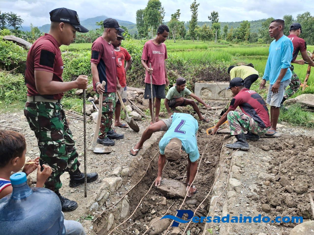 • Satuan Yonif 741/GN Pos Fatubesi Gotong-royong Perbaiki Saluran Irigasi di Daerah Perbatasan