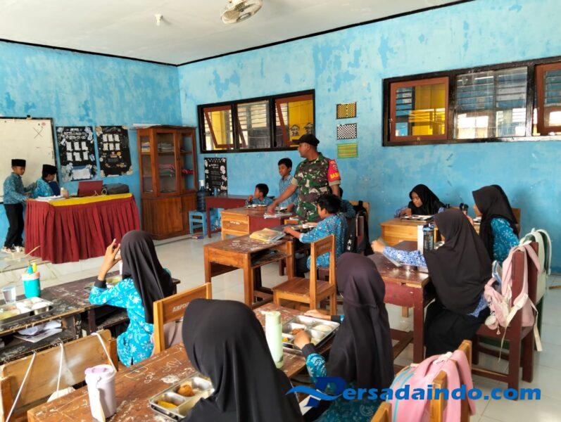 Sumbawa Barat, NTB – Anggota Koramil 1628-05/Jereweh, Babinsa Desa Goa, Koptu Agus Dermawan, melaksanakan pendampingan Program Makan Bergizi Gratis (MBG) di SD Negeri Goa, Desa Goa, Kecamatan Jereweh, Kabupaten Sumbawa Barat, pada Rabu, (05/11/2025), pukul 11.45 Wita.