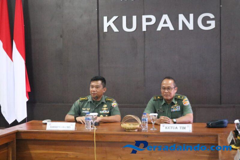 NTT-KUPANG, – Kodim 1604/Kupang menerima kunjungan kerja Tim Pokja Kajian Strategis Staf Ahli Kasad yang dipimpin Brigjen TNI IGBN Tedja Sukma E., S.Sos., M.Tr.(Han)., M.S.S., bersama Kolonel Inf Eben Ezer Lumban Tobing, S.A.P. Kunjungan tersebut dalam rangka optimalisasi peran TNI AD dalam mendukung Program Sekolah Rakyat, bertempat di Aula Kodim 1604/Kupang, Jl. Moh. Hatta, Kelurahan Fontein, Kecamatan Kota Raja, Kota Kupang. Kehadiran tim disambut hangat oleh Pgs. Kasdim 1604/Kupang Mayor Inf Hendry Dunant, S.I.P, beserta para perwira staf dan Danramil jajaran. Rabu (05/11/2025).