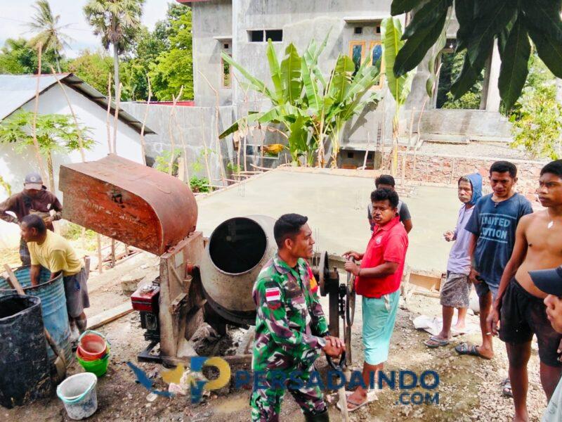 NTT–Kefamenanu, 18 Januari 2026, Babinsa Koramil 1618-02/Miobar, Kopda Maximus Busoin, menunjukkan dedikasi dan kepeduliannya dengan terjun langsung membantu pembangunan rumah salah satu warga di Desa Lemon.