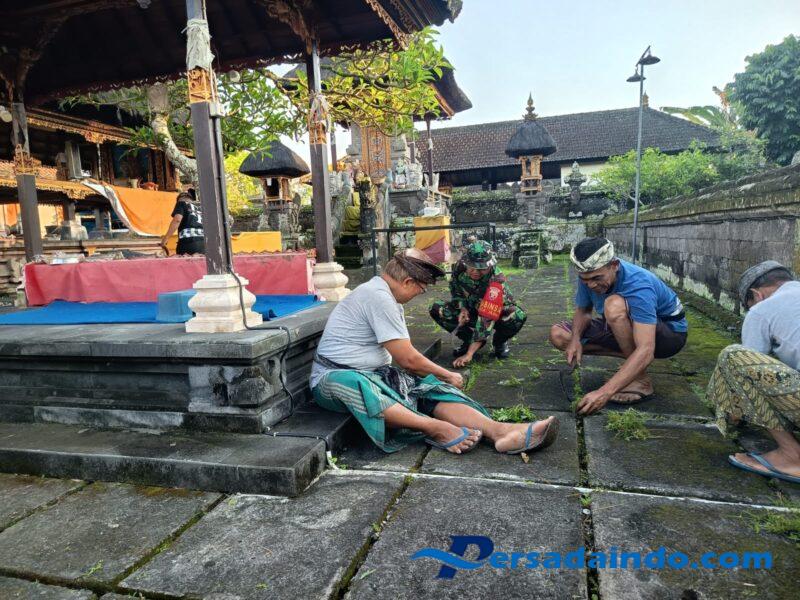 • Semangat Gotong Royong, Kebersamaan Babinsa Dengan Krama Adat dalam Pembersihan Pura Puseh
