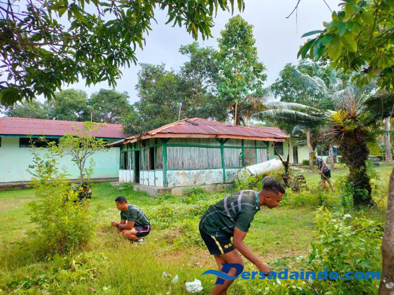• Semangat Gotong Royong, Prajurit dan PNS Makodim 1618/TTU Bersihkan Asrama Lama