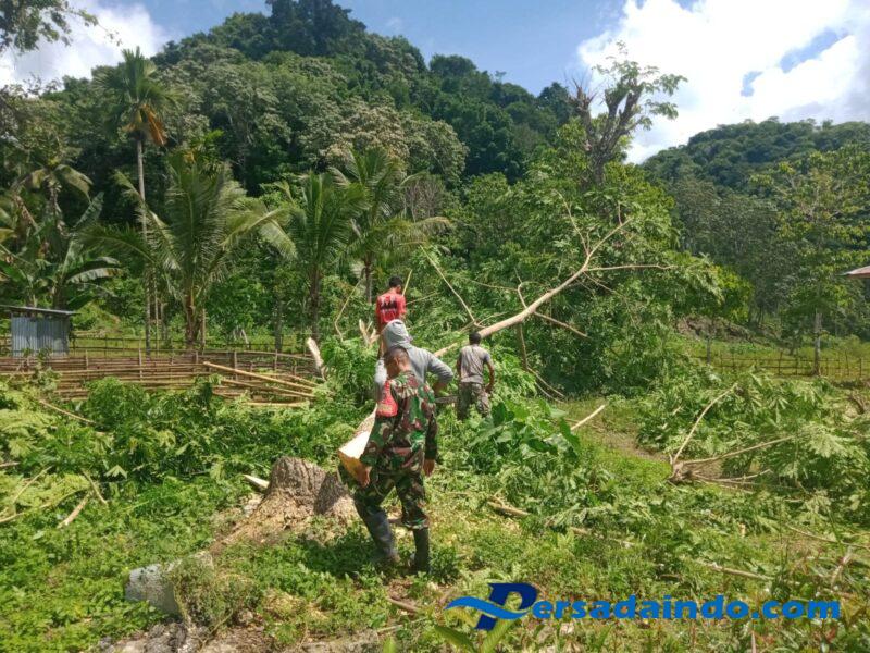 SUMBA BARAT – Babinsa Koramil 01/Loli, Kodim 1613/Sumba Barat, Sertu Mursidi bersama warga melaksanakan kegiatan penyiapan lahan untuk pembangunan Koperasi Merah Putih di Desa Tanarara, Kecamatan Loli, Kabupaten Sumba Barat, Jumat (28/11/2025).