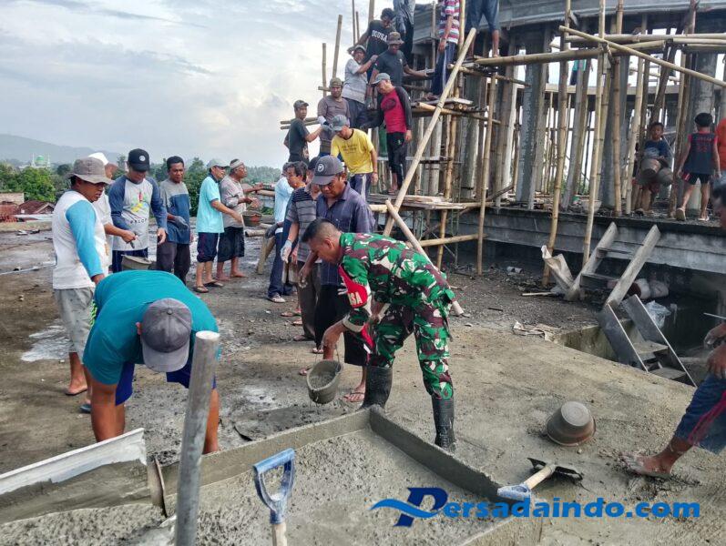 Lombok Barat, NTB – Dalam semangat kebersamaan dan kepedulian sosial, Bintara Pembina Desa (Babinsa) Beleka, Serda Lalu Suparman, Komando Rayon Militer (Koramil) 1606-04/Gerung, turun langsung bersama masyarakat melaksanakan gotong royong pengecoran dinding kubah Masjid Jamik Yahya di Dusun Mendagi, Desa Beleka, Kecamatan Gerung, Minggu (25/5/2025).