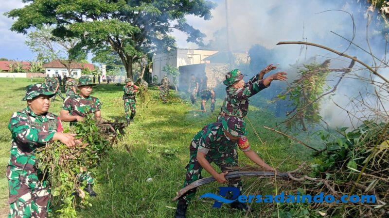 Sejak pagi, pemotong rumput berpadu dengan tawa warga dan prajurit TNI yang sama-sama sibuk merapikan area lapangan. Tanpa memandang pangkat maupun status, semua bekerja dalam satu barisan, mengumpulkan sampah, memangkas rumput, hingga merapikan sisi lapangan agar terlihat bersih dan nyaman.