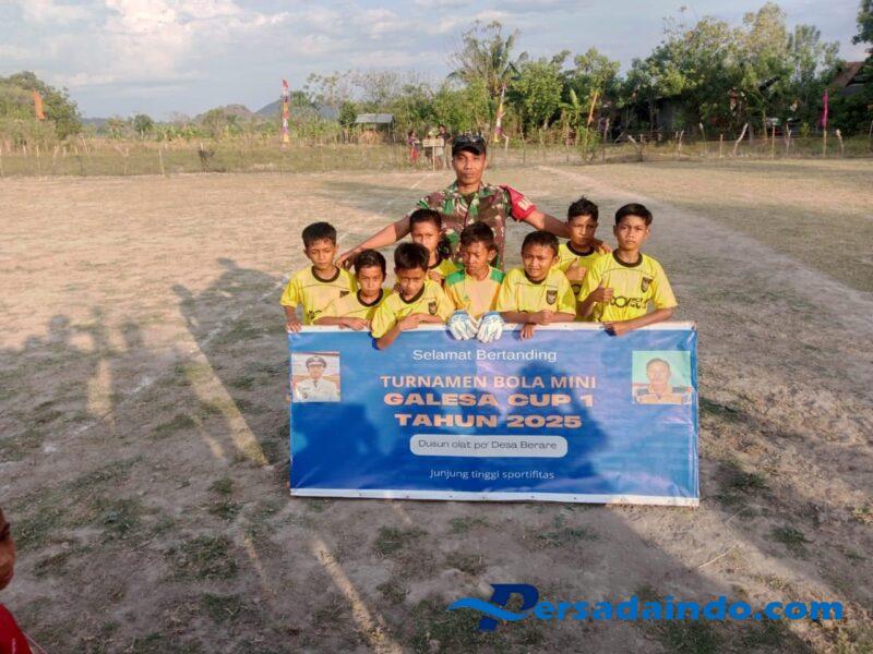 NTB, Sumbawa — Dalam rangka mempererat kemanunggalan TNI dengan rakyat sekaligus mendukung kegiatan positif di wilayah binaan, Babinsa Desa Berare, Koramil 1607-12/Moyo Hilir, Kopda Ahmad Syarif, turut hadir dan berperan aktif dalam pembukaan Open Turnamen Sepak Bola Mini Galesa Cup 1 yang dilaksanakan di Lapangan Sepak Bola Dusun Olatpo, Desa Berare, Kecamatan Moyo Hilir, pada Jumat (10/10/2025).