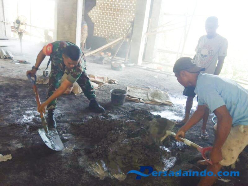 Kegiatan ini difokuskan pada pekerjaan plester tembok masjid sebagai bagian dari upaya perbaikan dan perawatan rumah ibadah yang menjadi pusat aktivitas spiritual dan sosial masyarakat. Dengan penuh semangat dan rasa tanggung jawab, warga dan aparat TNI bahu-membahu menyelesaikan pekerjaan yang membutuhkan kekompakan dan kerja sama yang solid.